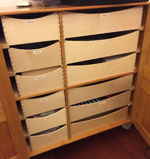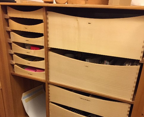 Billede 2 viser skuffer produceret til en Mogens Koch reol.
